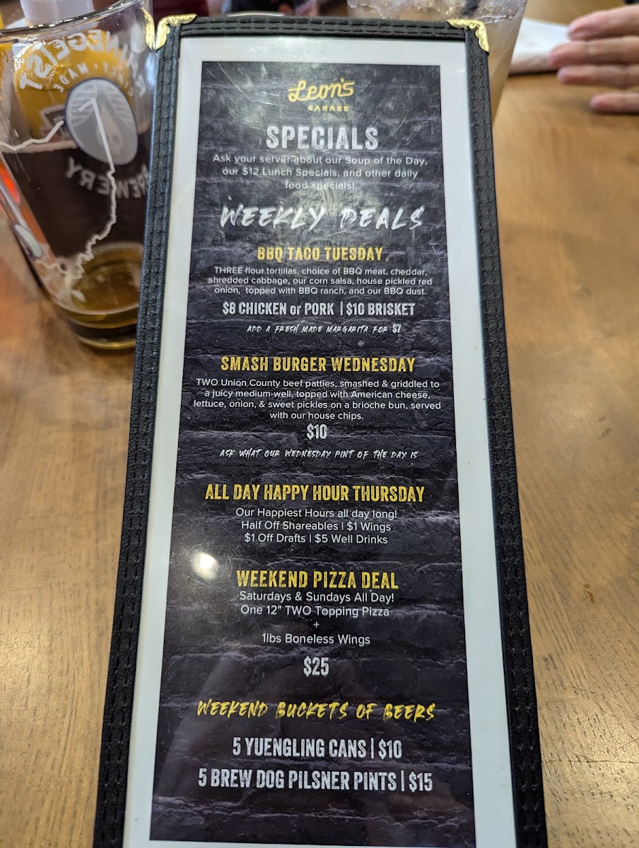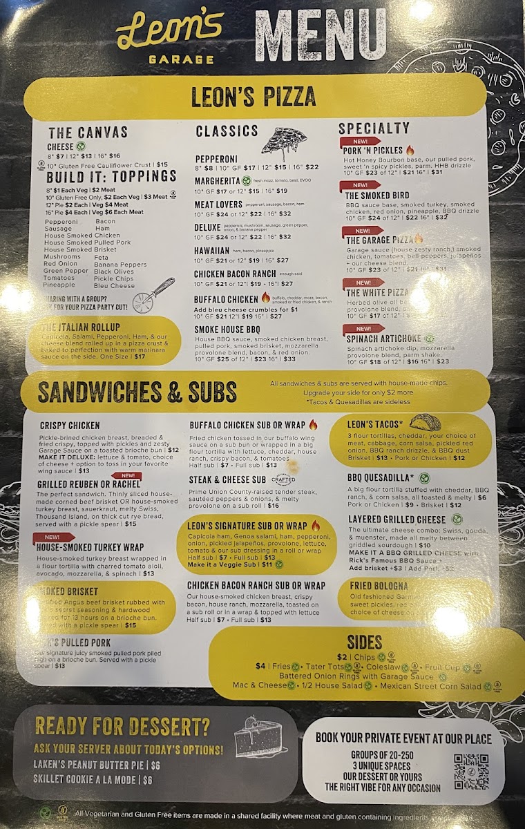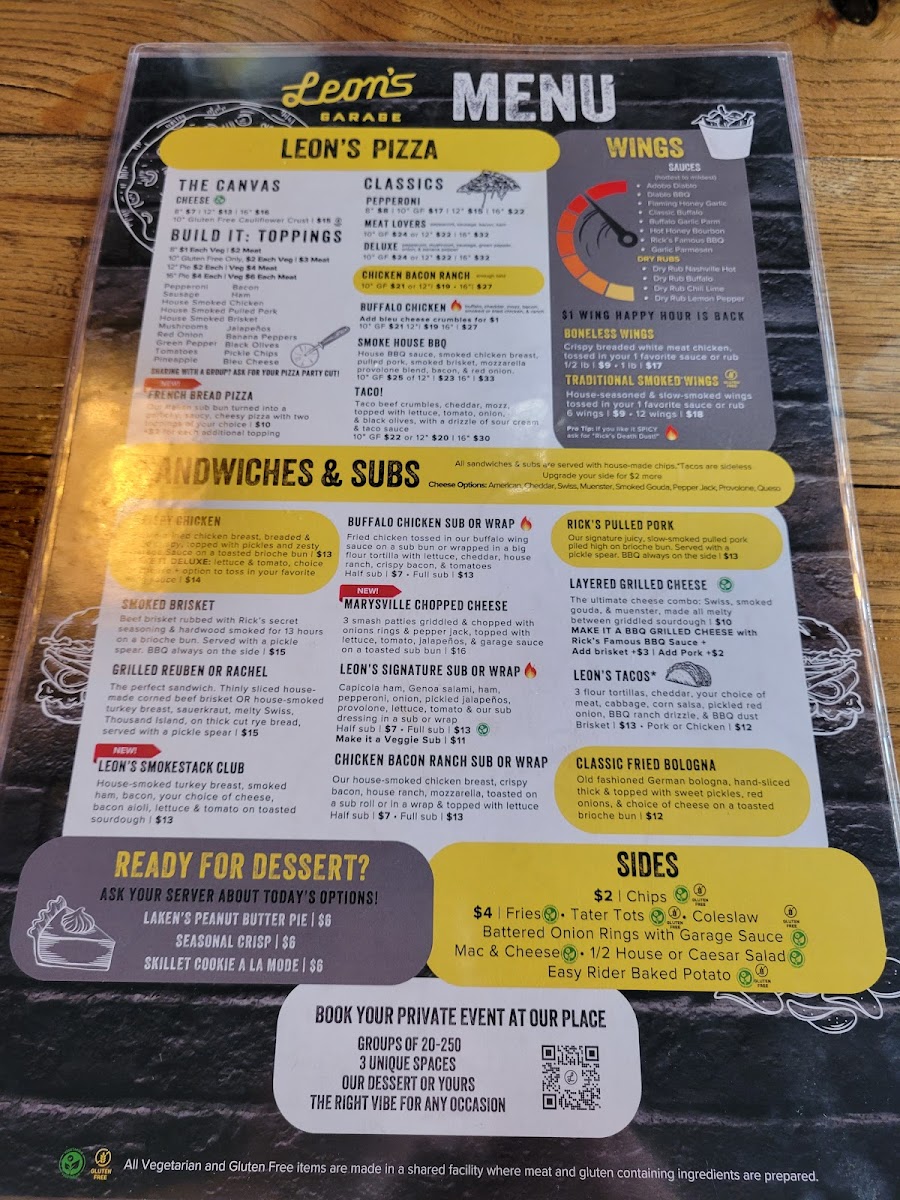 Welcome to Leon's Garage, an exciting culinary hotspot located at 326 E 5th St, Marysville, OH. This vibrant restaurant harmoniously blends a relaxed dining atmosphere with a buzzing spirit of community and entertainment. Known for its delectable wings, hearty sandwiches, and a splendid variety of pizzas, Leon's Garage offers a menu that tantalizes your taste buds with every bite.